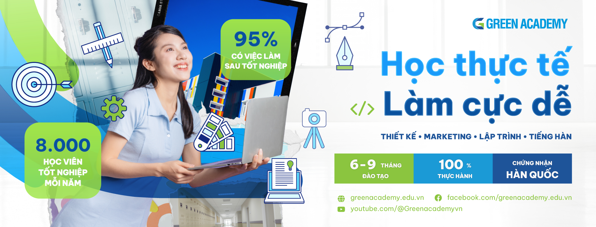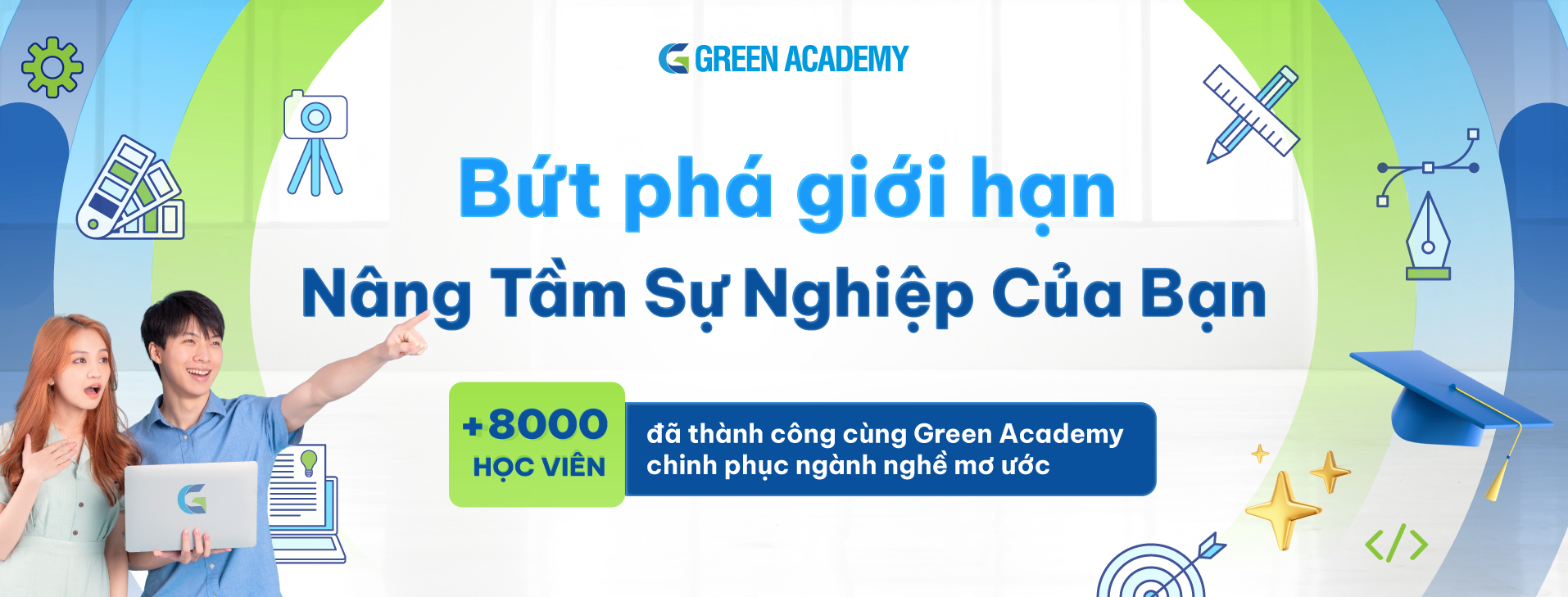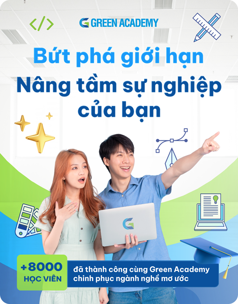 Tại Green Academy, chúng tôi mang đến những chương trình đào tạo thiết kế chuyên sâu, giúp bạn từ người mới bắt đầu trở thành chuyên gia chỉ trong 6-9 tháng.