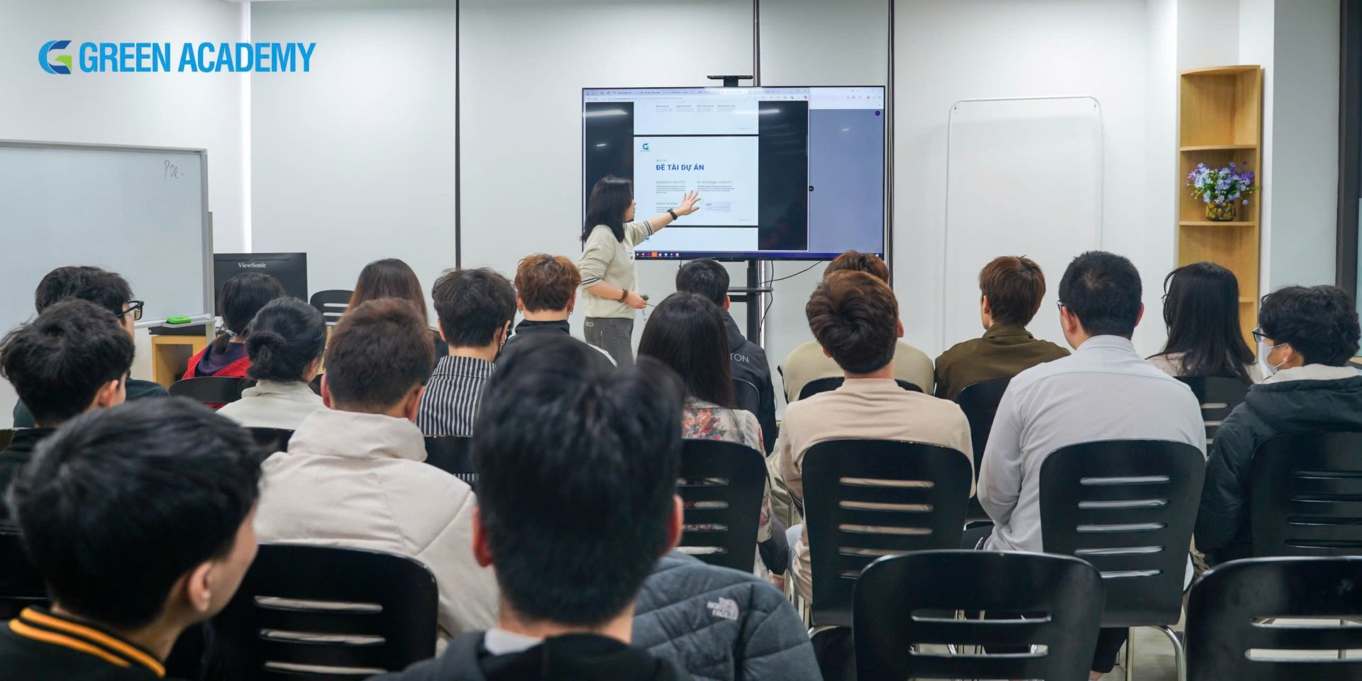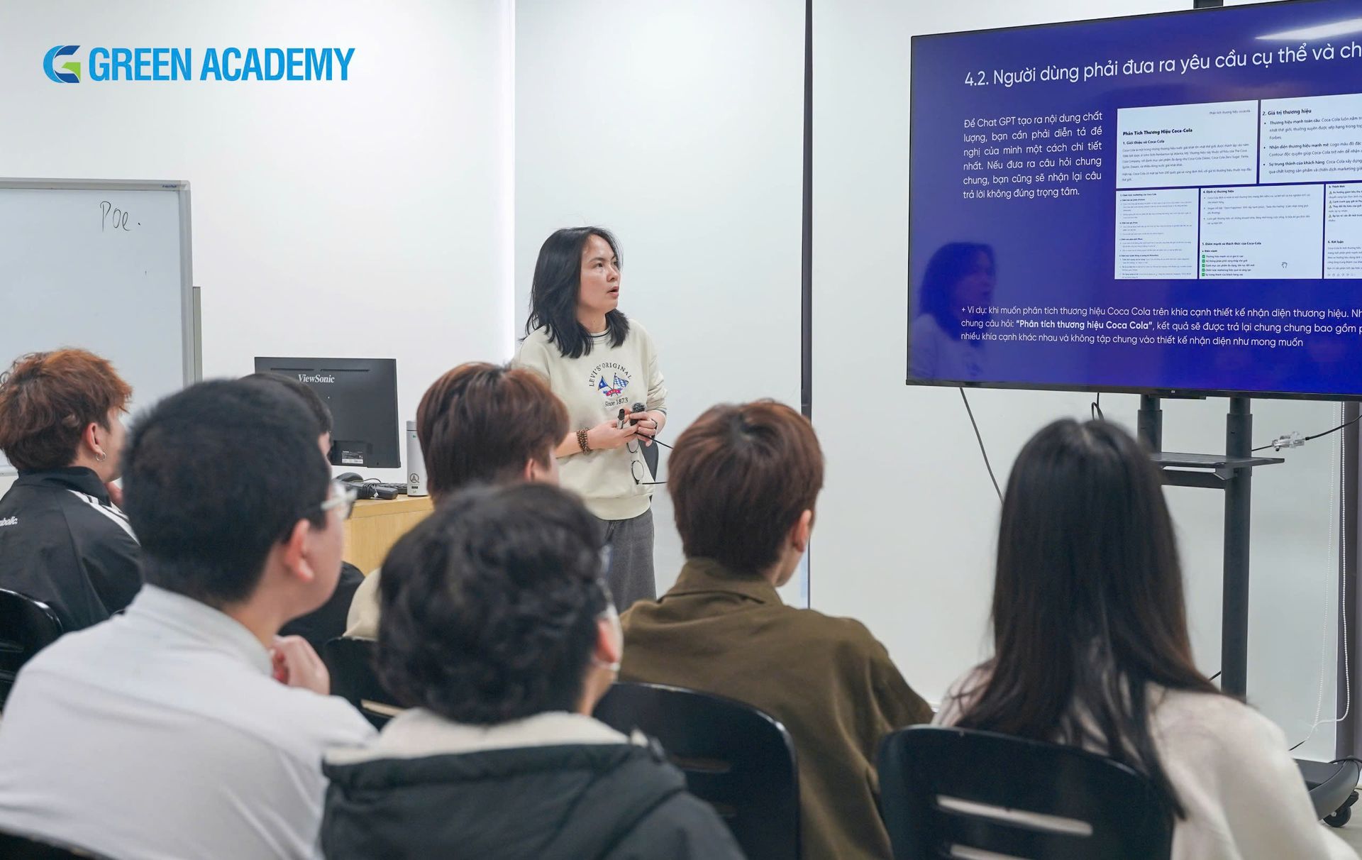 Học thực tế với những buổi workshop chuyên ngành luôn được các học viên đón chờ tại Green đó. Không chỉ là công cụ và tư duy thiết kế, Green còn cập nhật kiến thức và các tiện ích mới, giúp học viên tối ưu quá trình thiết kế, bao gồm cả ứng dụng AI trong thiết kế nhận diện thương hiệu – xu hướng của thời đại.
