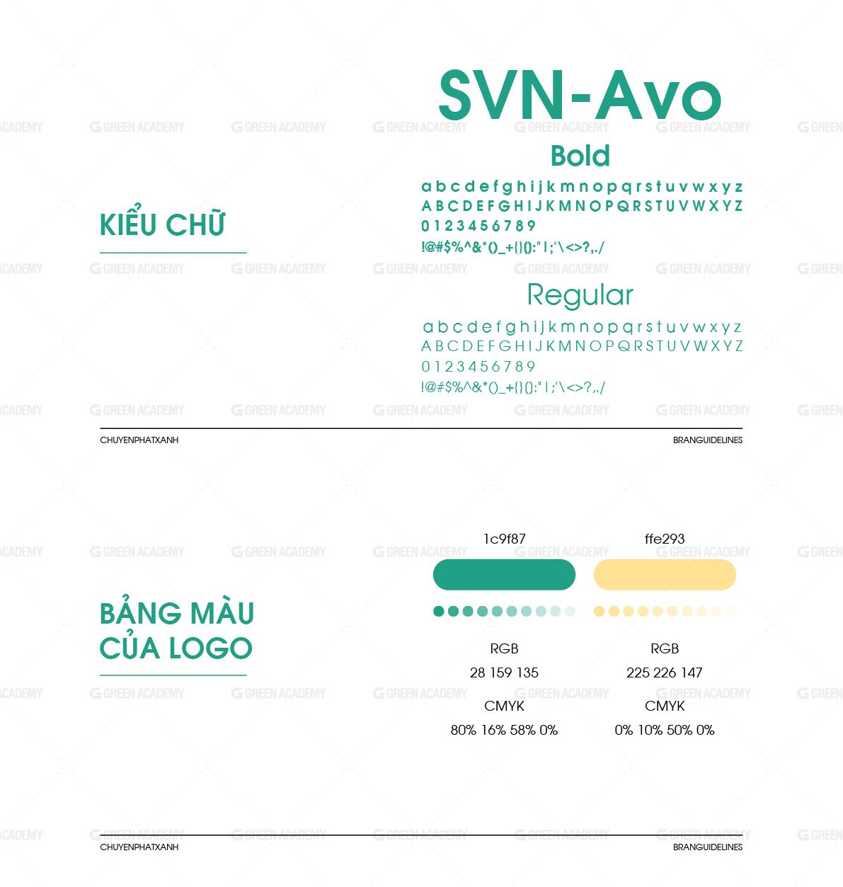 Font chính sử dụng là SVN-Avo, một bộ chữ không chân với các phiên bản Bold và Regular. Kiểu chữ này mang đến cảm giác chuyên nghiệp, dễ đọc và phù hợp với môi trường số, đồng thời giúp tăng tính đồng nhất trong hệ thống truyền thông đa nền tảng.