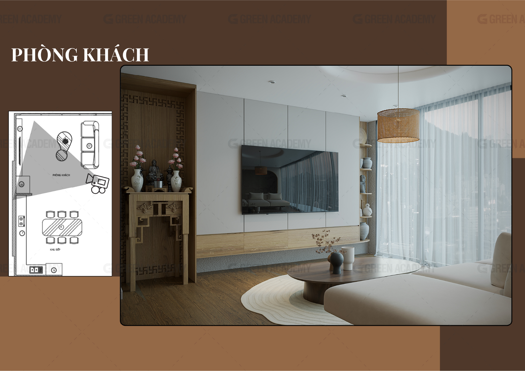 Căn hộ tọa lạc tại thành phố Hạ Long. Gia đình gia chủ gồm 3 người: bố mẹ và con lớn học lớp 12. Mong muốn có một không gian sống mang màu sắc nhẹ nhàng và trung tính, ưu tiên công năng.