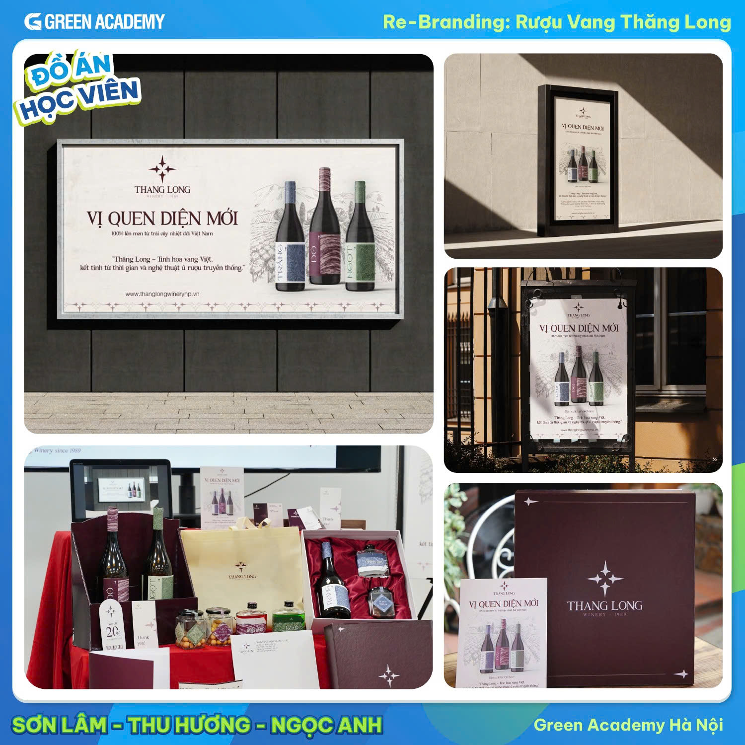 Trong hành trình học tập tại các trường đào tạo đồ họa, đồ án thiết kế cuối khóa không chỉ là một bài kiểm tra kỹ năng, mà còn là thước đo tư duy giải quyết vấn đề của người làm nghề. Mới đây, nhóm học viên Sơn Lâm – Thu Hương – Ngọc Anh (lớp TF-2DE-35M113) tại Green Academy đã gây ấn tượng mạnh khi thực hiện dự án tái định vị thương hiệu cho một cái tên “lão làng”: Vang Thăng Long.