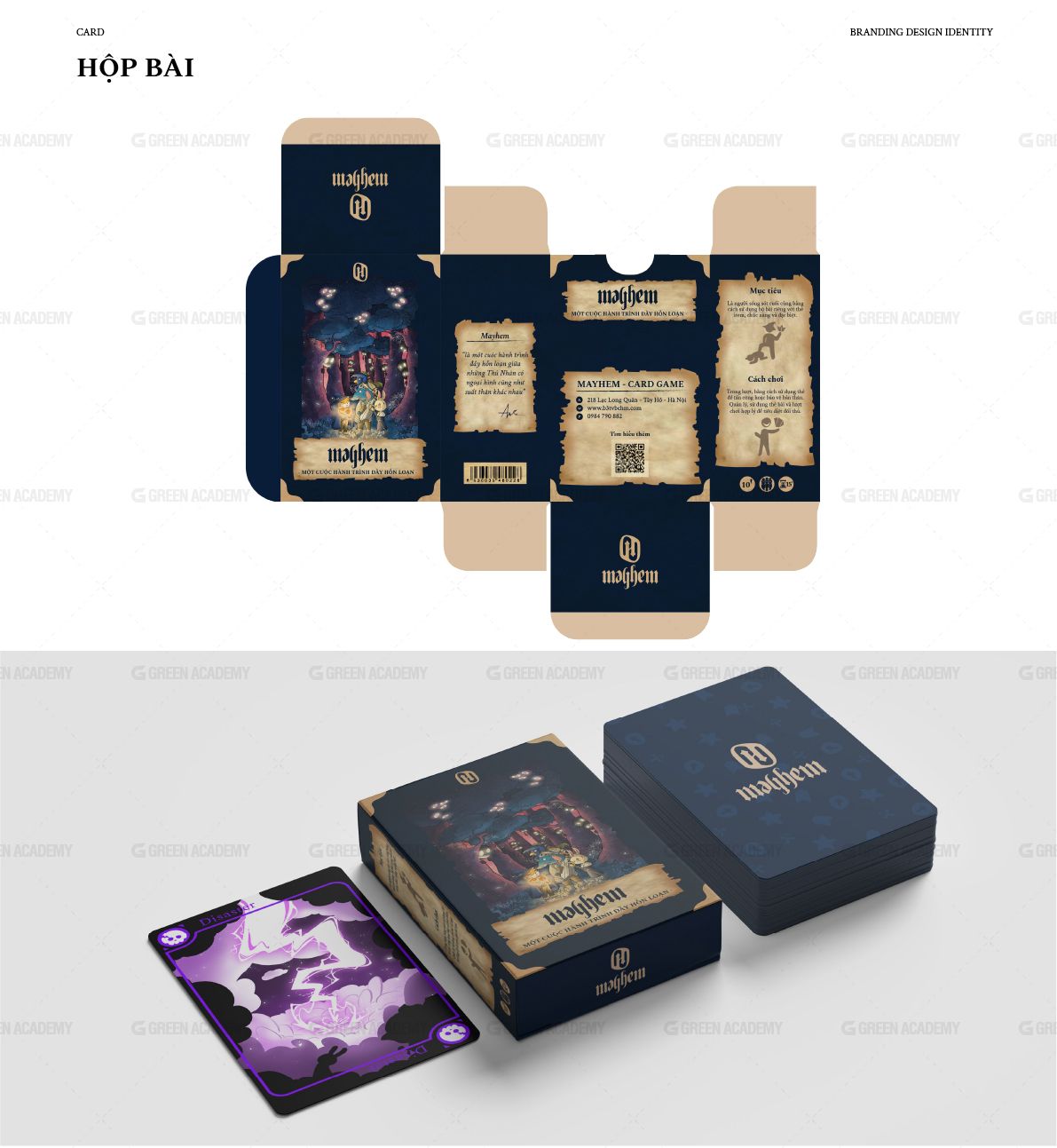 Từ cảm hứng về một vụ nổ bí ẩn mở ra thế giới huyền bí và kỳ quái, nhóm học viên Thiết kế Đồ họa tại Green Academy đã biến ý tưởng thành hiện thực qua dự án thiết kế nhận diện thương hiệu board game “Mayhem – Hành trình hỗn loạn” – một card game giả tưởng, nơi người chơi hóa thân thành các nhân vật phiêu lưu tìm kiếm Cây Thần – vật phẩm huyền thoại có khả năng ban điều ước.