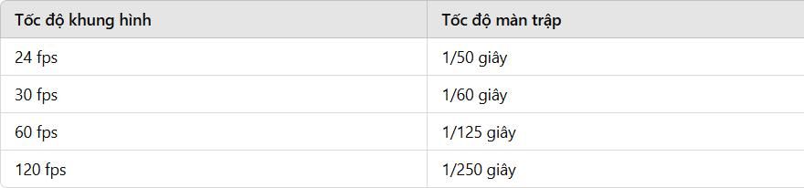 Mẫu số = gấp đôi tốc độ khung hình.