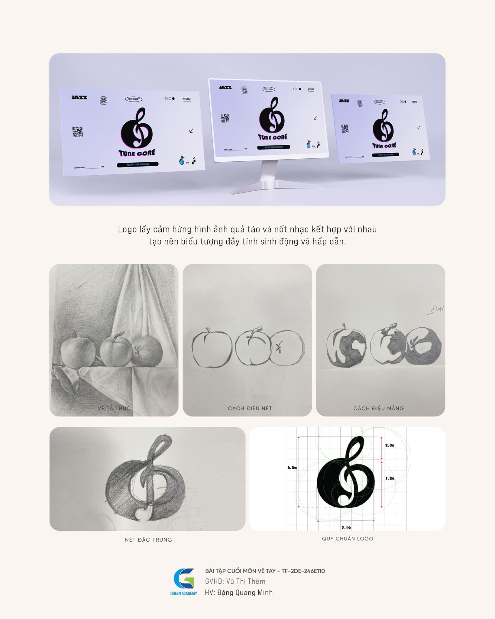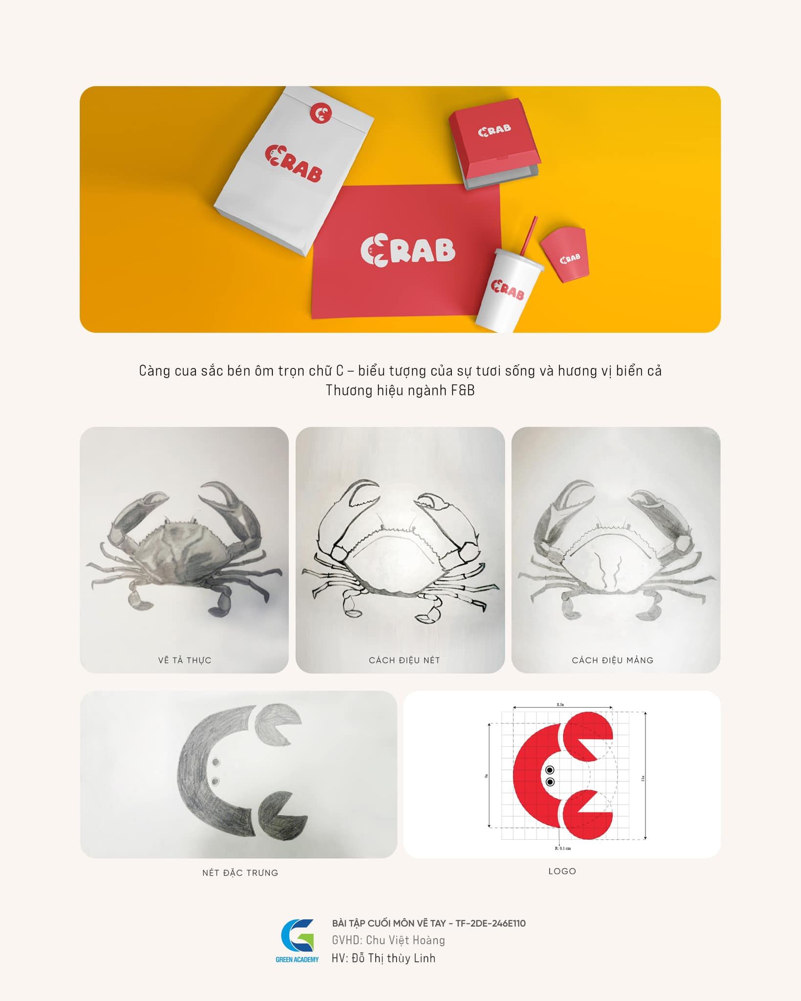 Mỗi thiết kế đều mang trong mình một câu chuyện và triết lý thương hiệu rõ ràng – điều đáng nể khi đây mới chỉ là những bài tập đầu tiên của học viên ngành thiết kế đồ họa tại Green.