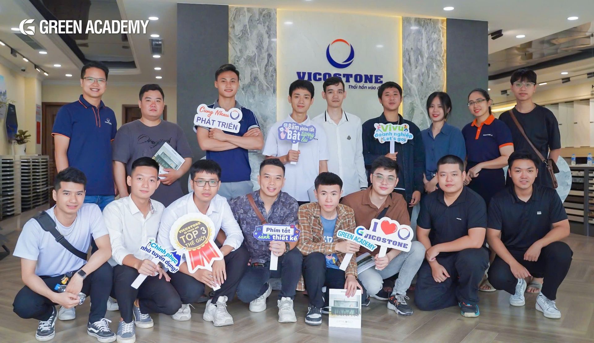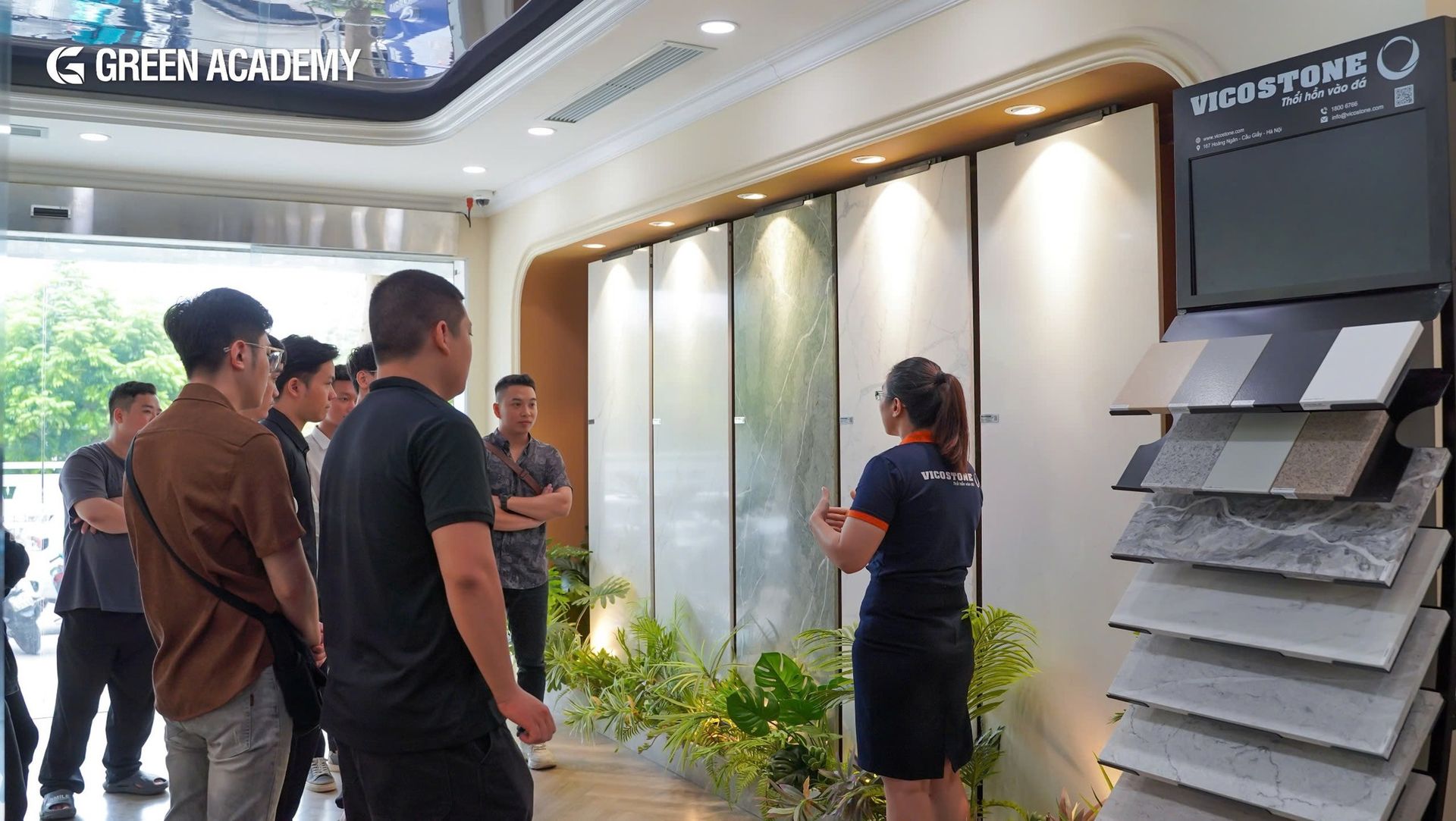 Green Academy luôn đề cao việc kết nối kiến thức lý thuyết với môi trường làm việc thực tế. Chuyến tham quan showroom Vicostone lần này đã mang lại cho các học viên cái nhìn thực tế về các vật liệu nội thất cao cấp, quy trình sáng tạo lựa chọn sử dụng vật liệu và xu hướng thị trường. Những trải nghiệm này chắc chắn sẽ là hành trang quý báu giúp các học viên tự tin hơn trên con đường phát triển sự nghiệp trong lĩnh vực thiết kế nội thất.