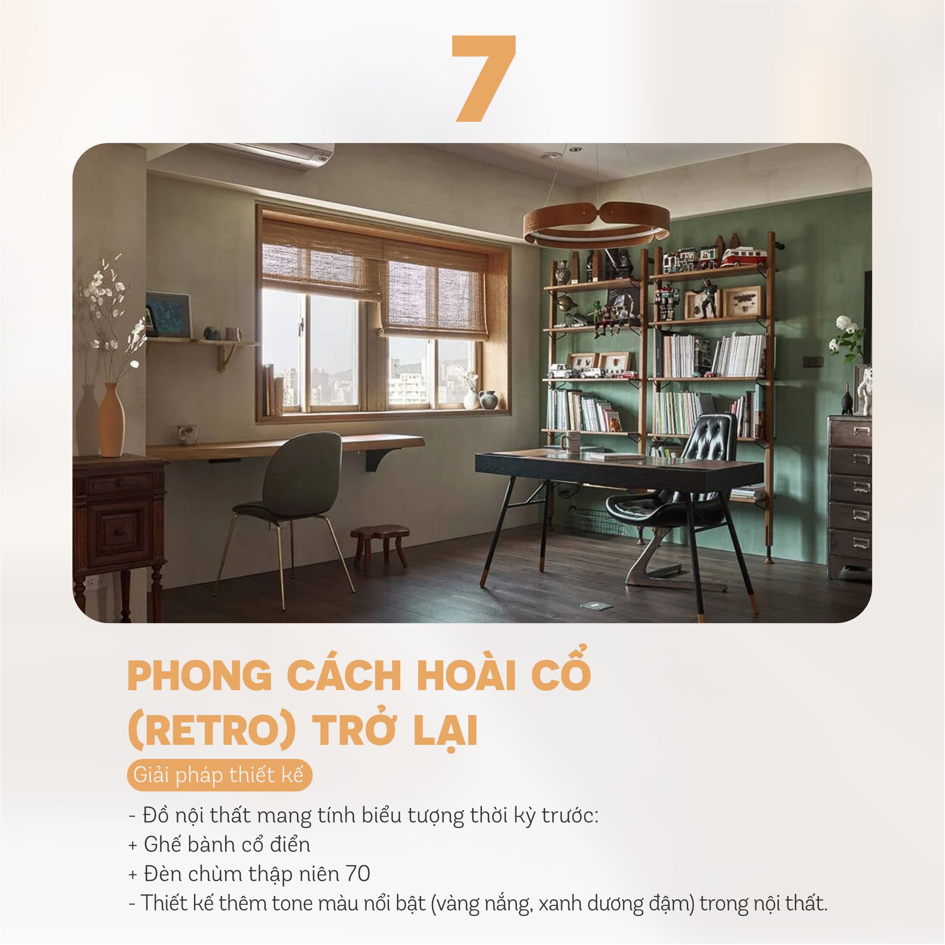 Retro phù hợp với các không gian sống cá nhân, tạo cảm giác thân thuộc nhưng vẫn thượng.