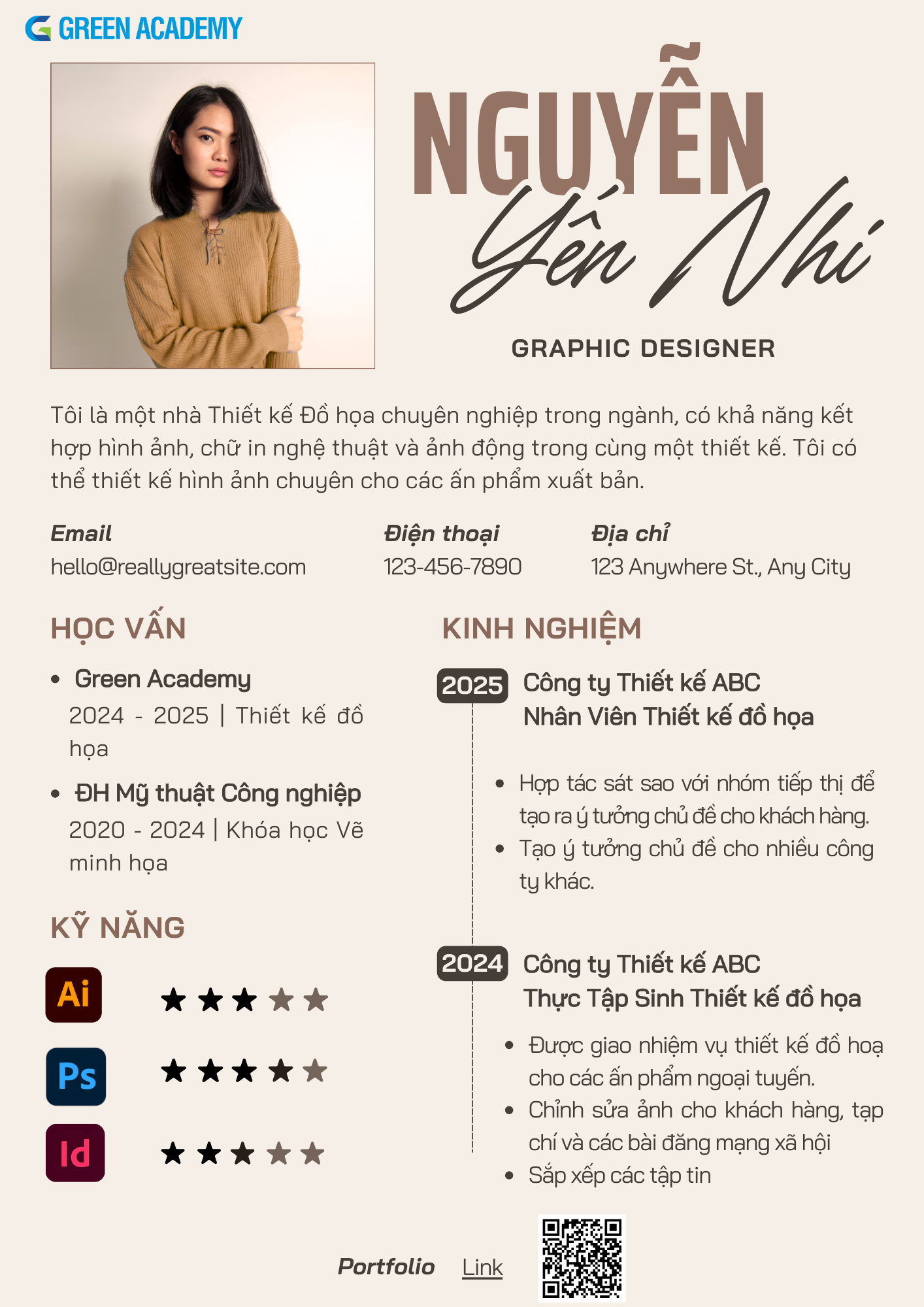 liên kết (URL) hoặc mã QR Code dẫn đến Portfolio