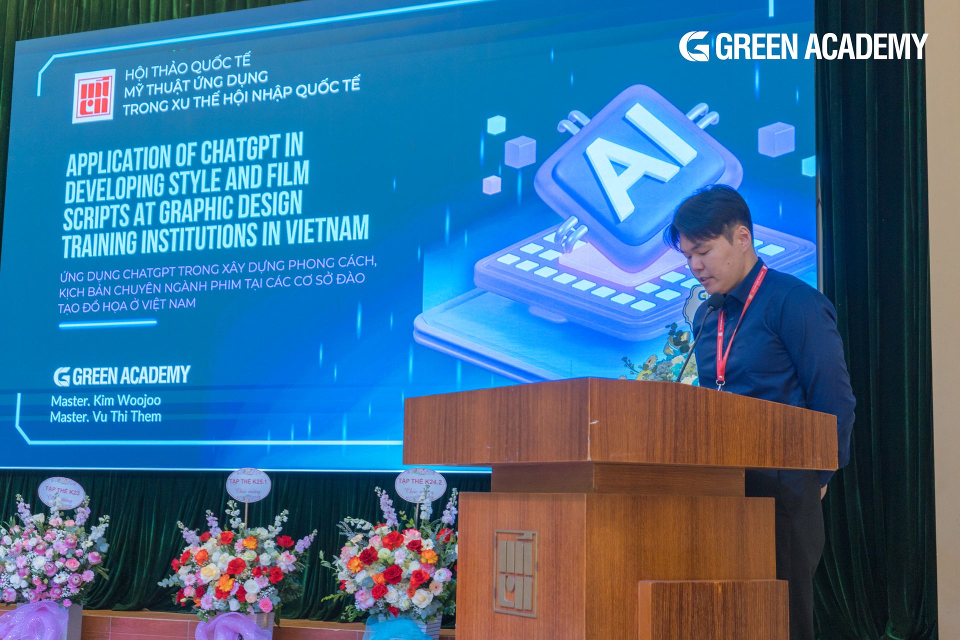 Vinh dự góp mặt trong 5 bài tham luận tại hội thảo, Đại diện Học viện Green Academy có Thạc sĩ Kim Woo Joo – Quản lý Green Academy khu vực Việt Nam và Thạc sĩ