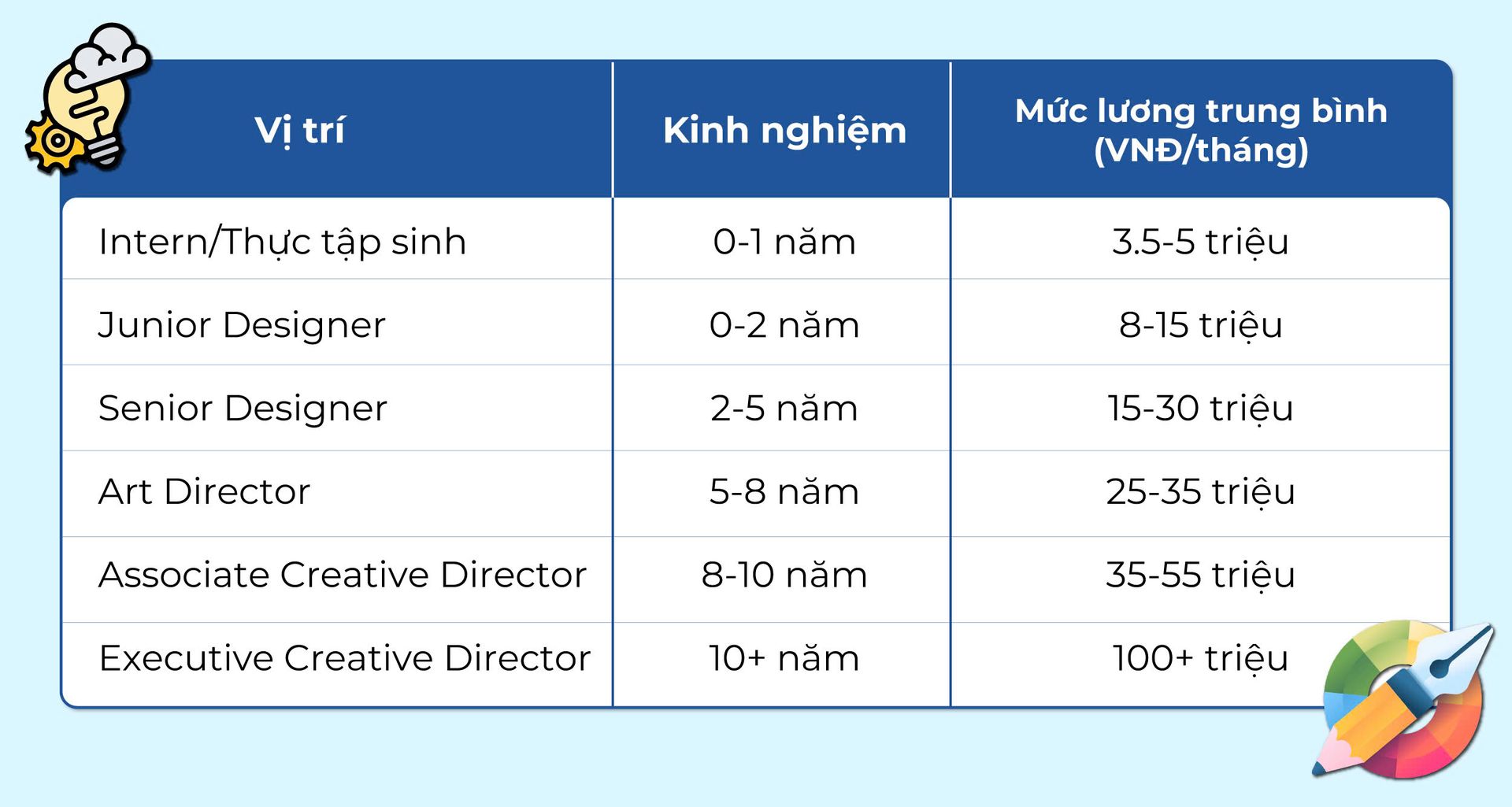 2. Mức lương chi tiết theo từng cấp bậc trong ngành thiết kế đồ họa