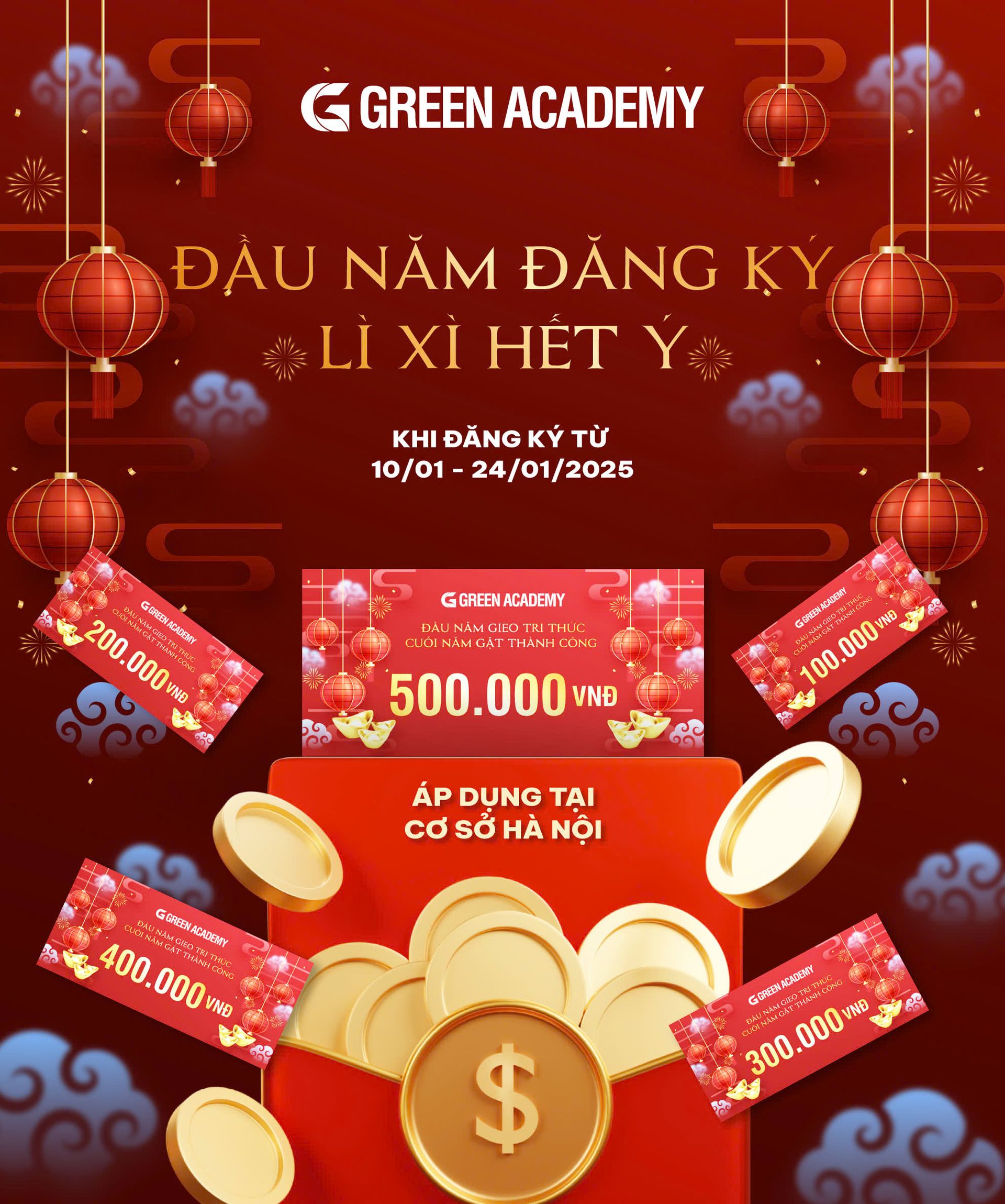 Mừng xuân Ất Tỵ, Green Academy gửi tặng chương trình tri ân bùng nổ, với những phần quà hấp dẫn và bao lì xì giá