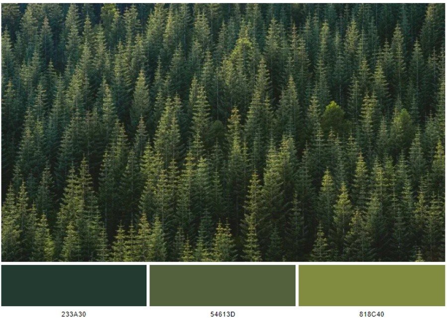 là nguồn cảm hứng để tạo ra color scheme gồm 3 màu: Black Leather Jacket (233a30), Dark Olive Green (54613d) and old moss green (818c40).