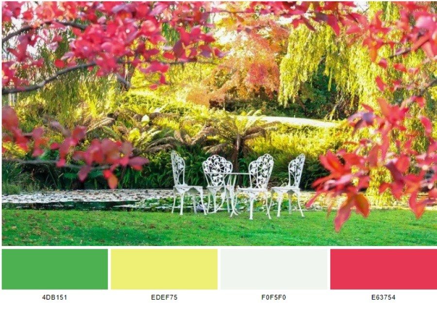 là một bảng màu được lấy cảm hứng từ hình ảnh. Color scheme này gồm 4 màu: apple (4db151), sunny (edef75), anti-flash white (f0f5f0) và desire (e63754).