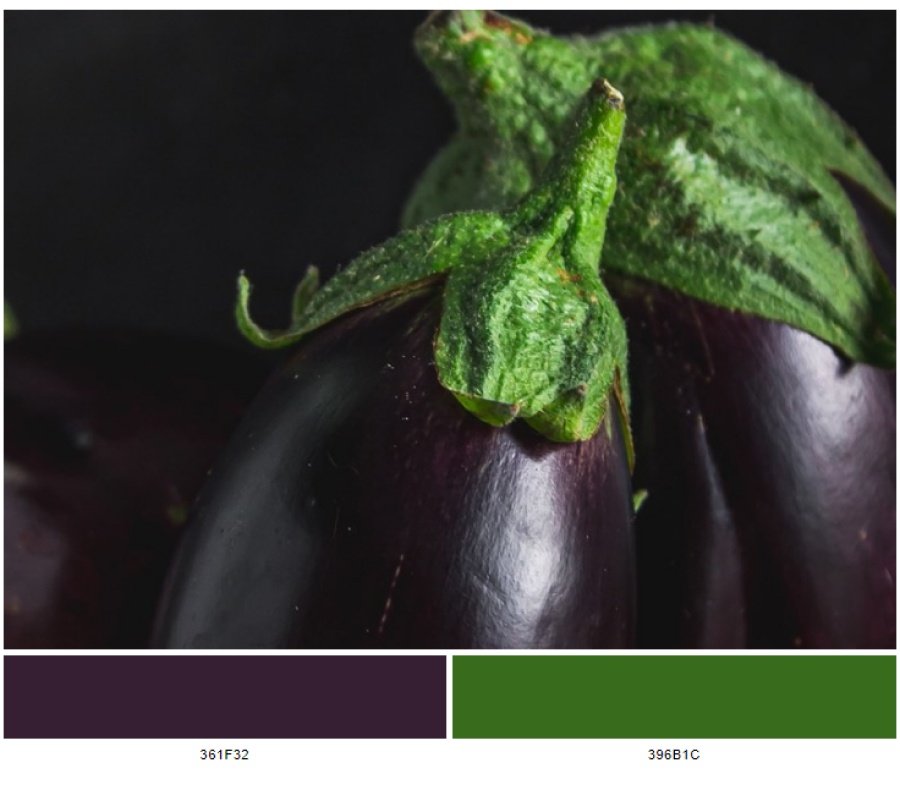 Bảng màu lấy cảm hứng từ tự nhiên này chỉ có 2 màu chủ đạo: dark purple (361f32) và dark moss green (396b1c).